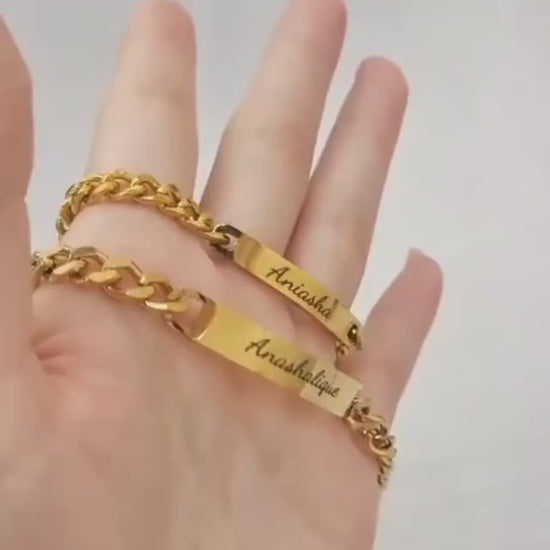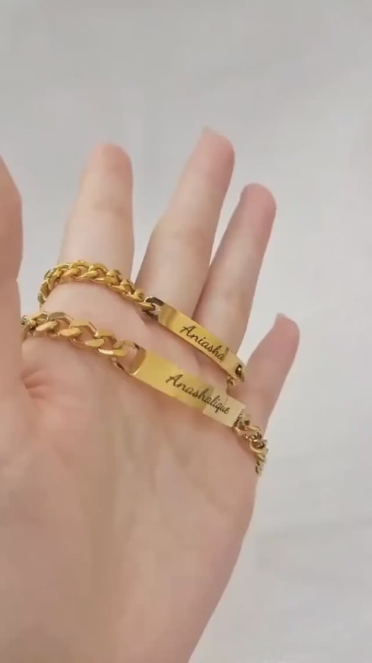 Made of 316L stainless steel, plated with 18k Gold, and featuring engravings of your choice.